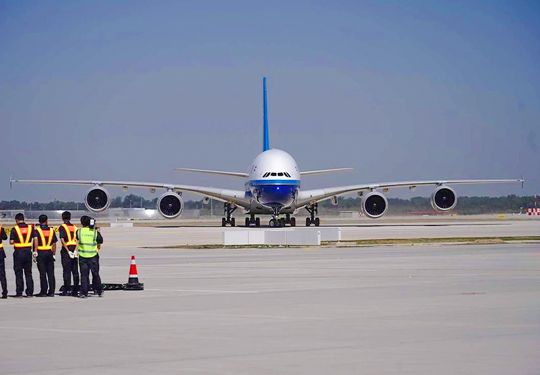 5月13日9時29分,一架南方航空公司空客A380飛機平穩(wěn)降落在北京大興國際機場西一跑道上。隨后,東方航空公司空客A350-900飛機、廈門航空公司波音B787-9飛機也先后在公司參建的北京大興國際機場西二、西一跑道降落和起飛。飛行程序試飛工作首次試飛圓滿成功,這標志著北京大興國際機場的工作重心由基礎建設轉向了準備投運通航。