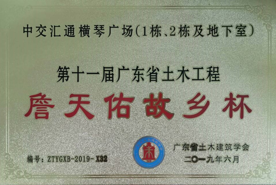 8月9日,在廣東省土木建筑工程技術(shù)創(chuàng)新交流及成果展示會(huì)上,珠海項(xiàng)目部承建的中交匯通橫琴?gòu)V場(chǎng)1棟、2棟及地下室工程,通過(guò)廣東省土木建筑學(xué)會(huì)評(píng)審,榮獲第十一屆廣東省土木工程“詹天佑故鄉(xiāng)杯”獎(jiǎng)。