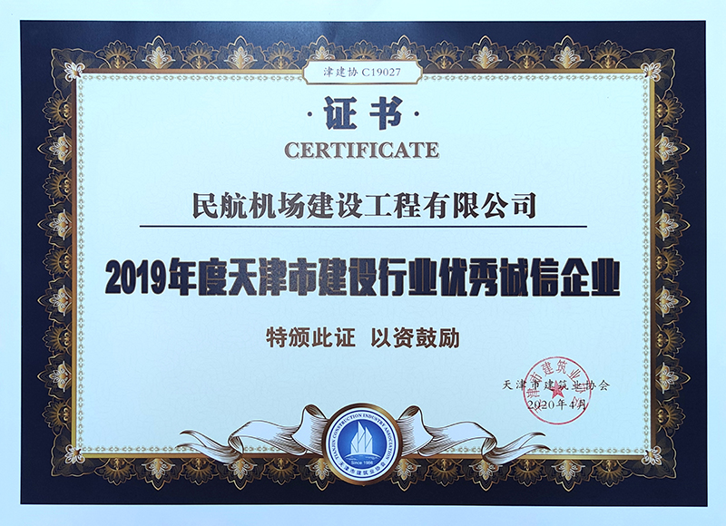 據(jù)了解,2019年度優(yōu)秀誠信施工企業(yè)的評審指標由企業(yè)基本情況、誠信建設、獎懲記錄和社會責任四部分組成。該項榮譽的獲得代表民航建工在誠信體系建設、合同履約、工程創(chuàng)優(yōu)、經營管理、自主創(chuàng)新和技術進步等方面均達到天津市同行業(yè)先進水平,并在天津市重點工程建設中作出突出貢獻。