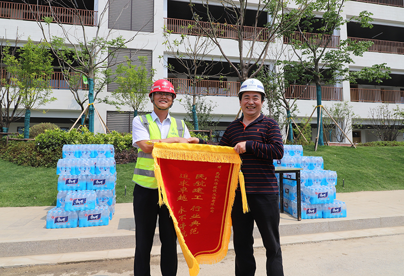 近日,華東師范大學(xué)鹽城實(shí)驗(yàn)中學(xué)校長到公司地五總經(jīng)理部、第七總經(jīng)理部承建的華東師范大學(xué)鹽城實(shí)驗(yàn)中學(xué)項(xiàng)目進(jìn)行慰問,并贈送印有“民航建工 行業(yè)典范 追求卓越永不停航”字樣的鮮紅錦旗,對工程的高效推進(jìn)表示滿意,并為項(xiàng)目一線建設(shè)者送來防暑降溫飲品。