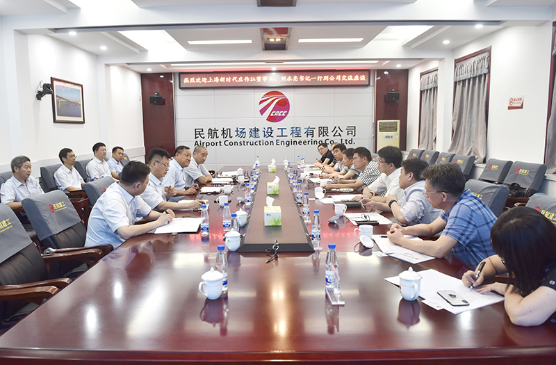 8月7日,上海民航新時代機(jī)場設(shè)計研究院有限公司(以下簡稱“上海新時代公司”)董事長、總經(jīng)理莊偉江,黨委書記、副總經(jīng)理劉永亮,黨委副書記、紀(jì)委書記杜益,副總經(jīng)理王偉等一行9人到公司交流座談。公司黨委書記、董事長王金超,總經(jīng)理張光蒲,董事、財務(wù)總監(jiān)曹伯杰,副總經(jīng)理王強(qiáng),黨委副書記、紀(jì)委書記、工會主席、監(jiān)事會主席田鵬出席。