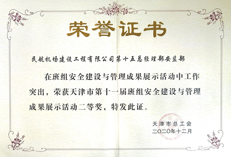 近日,天津市濱海新區(qū)總工會組織開展的班組安全建設(shè)與管理成果展示活動獲獎名單公布,公司報送的三部作品全部獲獎,其中第十五總經(jīng)理部展示視頻獲得天津市班組安全建設(shè)與管理成果展示二等獎,第五總經(jīng)理部、第十四總經(jīng)理部分別獲得濱海新區(qū)班組安全建設(shè)與管理成果展示優(yōu)勝獎。