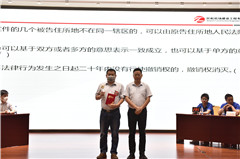 8月31日,公司“攜手筑夢 與法同行”第三屆法律知識競賽在總部圓滿舉辦。公司總經(jīng)理張光蒲,董事、財務(wù)總監(jiān)曹伯杰,黨委副書記、紀(jì)委書記、工會主席、監(jiān)事會主席田鵬,副總經(jīng)理杜振龍出席活動。來自18家基層單位的代表隊參加了比賽。比賽為期一天,分為預(yù)賽和決賽,預(yù)賽決出八強(qiáng)隊伍進(jìn)入決賽。比賽過程中,各代表隊斗志昂揚,踴躍競答,充分展現(xiàn)了選手們的法律素養(yǎng)和團(tuán)隊精神。同時,比賽還設(shè)置了觀眾互動題,寓教于樂,營造了學(xué)法、用法的濃厚氛圍。經(jīng)過激烈角逐,珠??偨?jīng)理部、第三總經(jīng)理部、第一總經(jīng)理部分獲團(tuán)體冠亞季軍,第六總經(jīng)理部獲“最佳組織獎”,3名選手獲“最佳風(fēng)采獎”。此次法律知識競賽提升了法律素養(yǎng)和規(guī)避法律風(fēng)險的能力,達(dá)到以賽促學(xué)、以賽促用的效果。