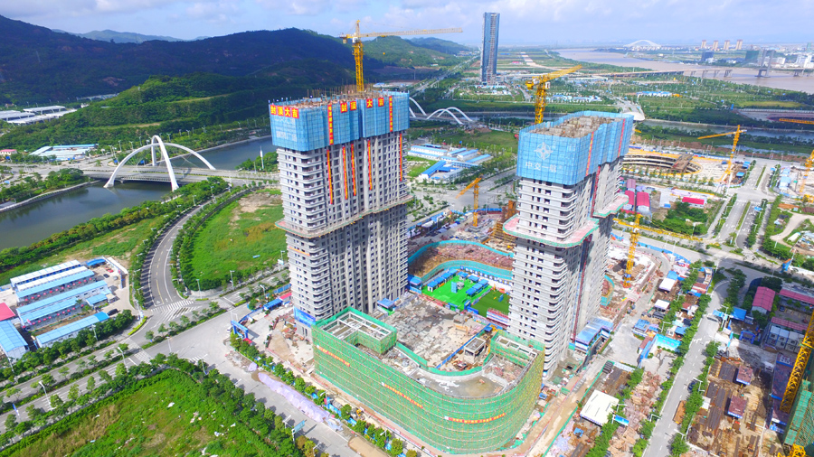 工程簡介:項目位于珠海橫琴新區(qū)十字門商務(wù)區(qū)離岸金融島內(nèi),總占地面積32453.77㎡,總建筑面積280903.56㎡。其中,辦公主塔樓建筑面積124635.2㎡,建筑層數(shù)62層,結(jié)構(gòu)高度299.4m,建筑高度309.5m;結(jié)構(gòu)形式為框筒結(jié)構(gòu),核心筒為勁性柱+鋼板剪力墻外包砼,外框為鋼框架形式。公司以爭創(chuàng)“魯班獎”為目標,著力應(yīng)用遠程監(jiān)控、虹膜實名制考勤系統(tǒng)、物業(yè)管理系統(tǒng)、BIM技術(shù)等手段大力實施推進項目的數(shù)字化、綠色化施工,并取得良好成果。