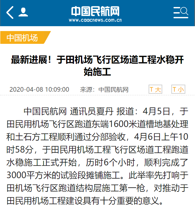 4月8日,中國(guó)民航網(wǎng)以《最新進(jìn)展!于田機(jī)場(chǎng)飛行區(qū)場(chǎng)道工程水穩(wěn)開(kāi)始施工》為題,對(duì)公司第九總經(jīng)理部承建的新疆于田民用機(jī)場(chǎng)工程場(chǎng)道及附屬設(shè)施工程三標(biāo)段施工進(jìn)展情況進(jìn)行了報(bào)道,給予良好評(píng)價(jià)。